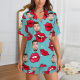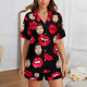 Custom Short Sleeve Pajama Bright Pink Base with 3D Red Hearts and Lips Prints Valentine's Day Gift for Her